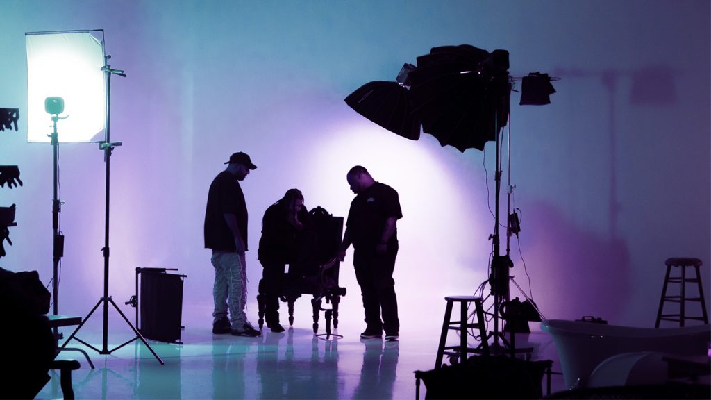 Acoustically treated, customizable backdrops, and space for both indie shoots and full productions.